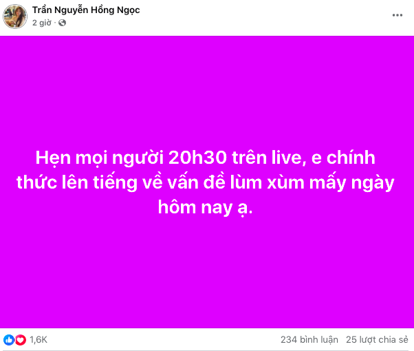 Giữa lúc drama đang lan rộng, Ngọc Kem quyết định tổ chức một buổi livestream để chia sẻ sự thật về mối quan hệ của cô với ViruSs và giải đáp mọi thắc mắc từ người hâm mộ. Đây là lần đầu tiên Ngọc Kem thẳng thắn nói về chuyện tình cảm của mình sau khi những đổ vỡ.