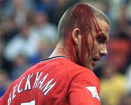23/9/2000, David Beckam bị thương nặng sau khi va chạm với một cầu thủ của Chelsea tại sân Old Trafford. |