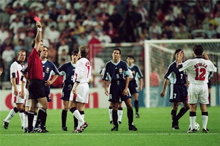 30/6/1998, tại World Cup 1998, trong vòng hai (16 đội), David Beckham nhận thẻ đỏ trong trận Anh gặp Argentina. Trận đấu kết thúc với tỷ số hoà và Anh bị thua trong lượt đá penalty. Nhiều cổ động viên và nhà báo đã đổ lỗi cho Beckham về thất bại của đội tuyển Anh và anh trở thành mục tiêu của sự chỉ trích và dè bỉu sau đó. |