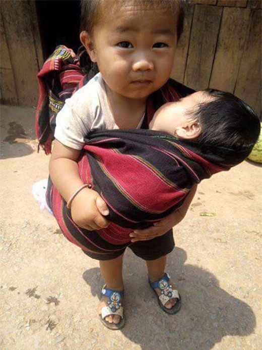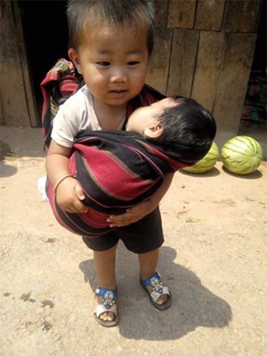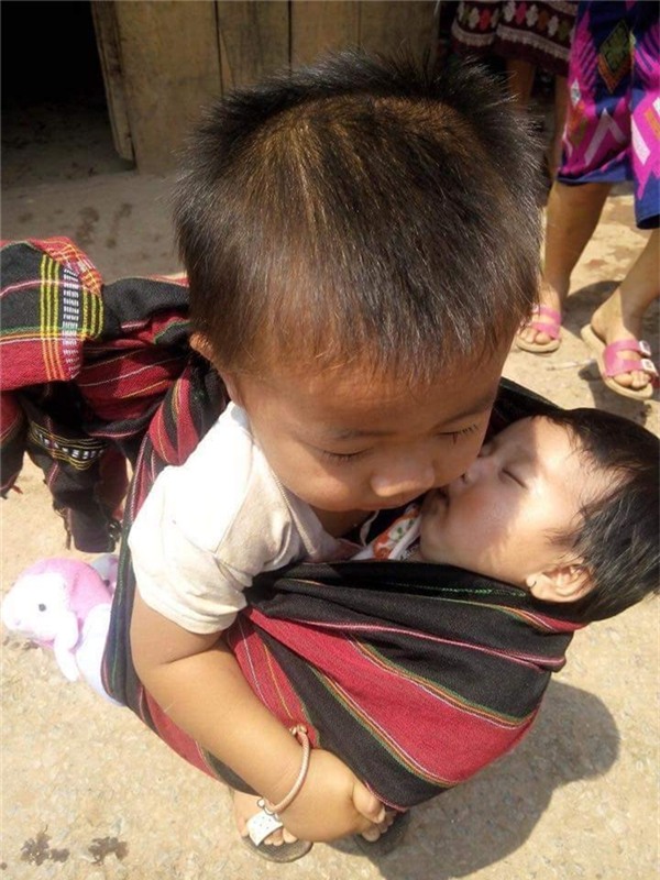 Những ngày gần đây, cộng đồng mạng Lào đang rất "sốt" với hình ảnh cảm động và đáng yêu của một bé trai đang địu đứa em nhỏ của mình.