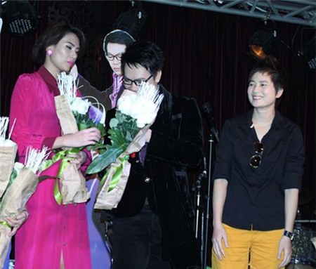 Đến chúc mừng ca sĩ đàn anh Vỹ Khang còn có nữ ca sĩ chuyển giới Hương Giang Idol.