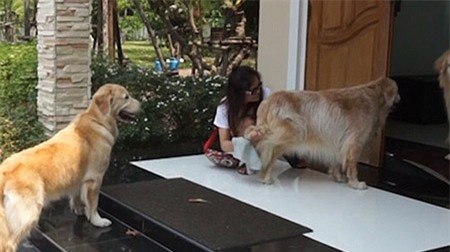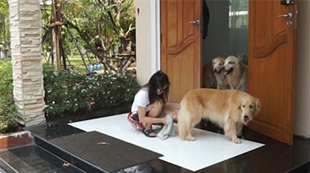 chân trước khi vào nhà. Đáng chú ý, những chú cún này đều rất có ý thức