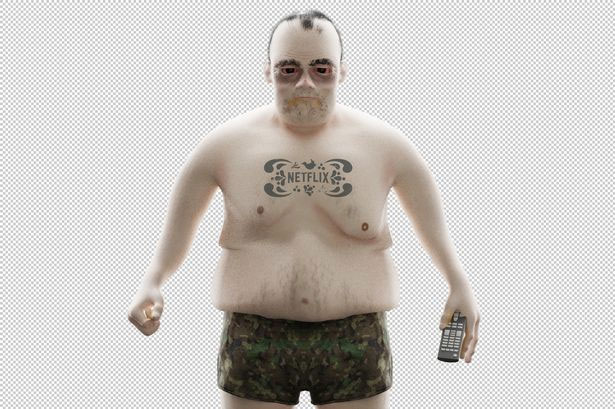 Eric bị béo phì, hói đầu và mắt luôn đỏ ngầu vì dành nhiều thời gian để xem phim liên tục tại nhà. Ảnh: Unilad.