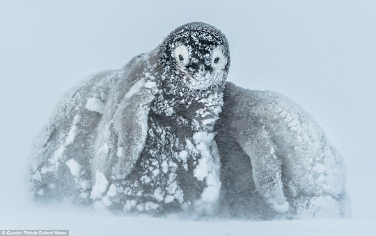 Cánh cụt con thường nhắm mắt nhằm tránh để tuyết ảnh hưởng đến tầm nhìn của chúng