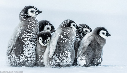 Những chú chim hoàng đế con tụ tập 1 chỗ nhằm chống chọi cái lạnh -24 độ C của Nam Cực. Ảnh: Daily Mail