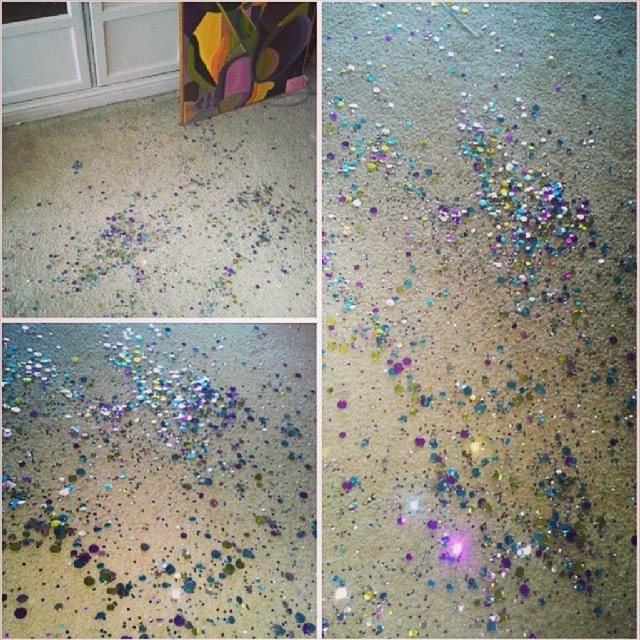 Để con đính đá cho thảm nhà thêm lấp lánh.