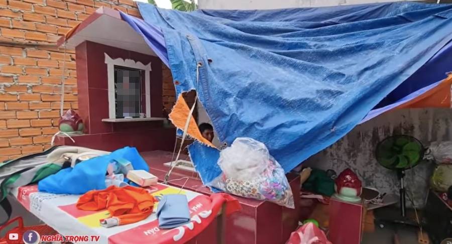 Nơi ở của 3 bố con là căn chòi dựng tạm bợ ở một góc trong khu nghĩa địa