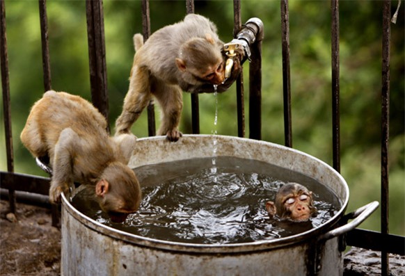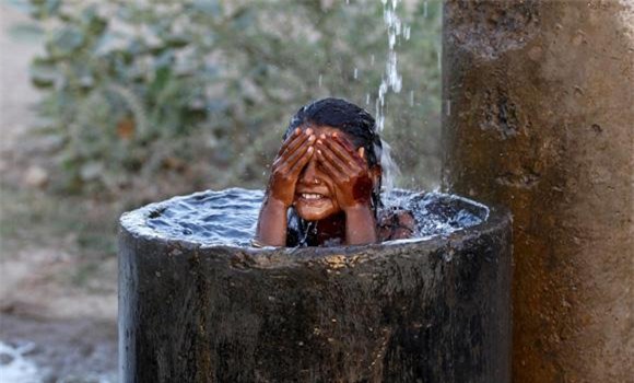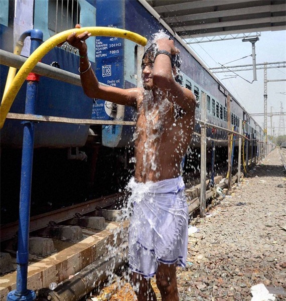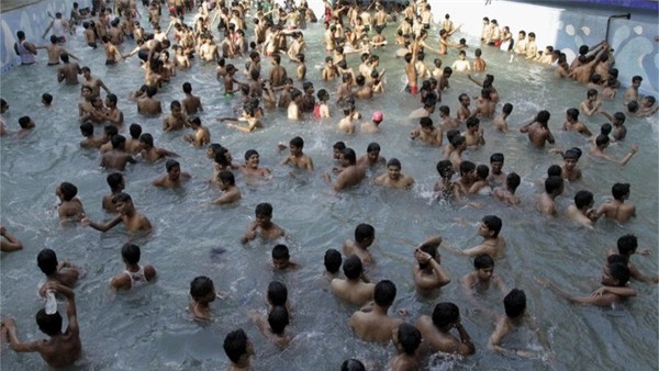 Chỉ trong vòng hơn một tháng, số người thiệt mạng ở Ấn Độ do thời tiết nắng nóng đã lên tới gần 300 người. Nhiệt độ trung bình ban ngày tại đây là 48 độ C khiến người dân tạm dừng tất cả công việc chỉ để... đi tắm.