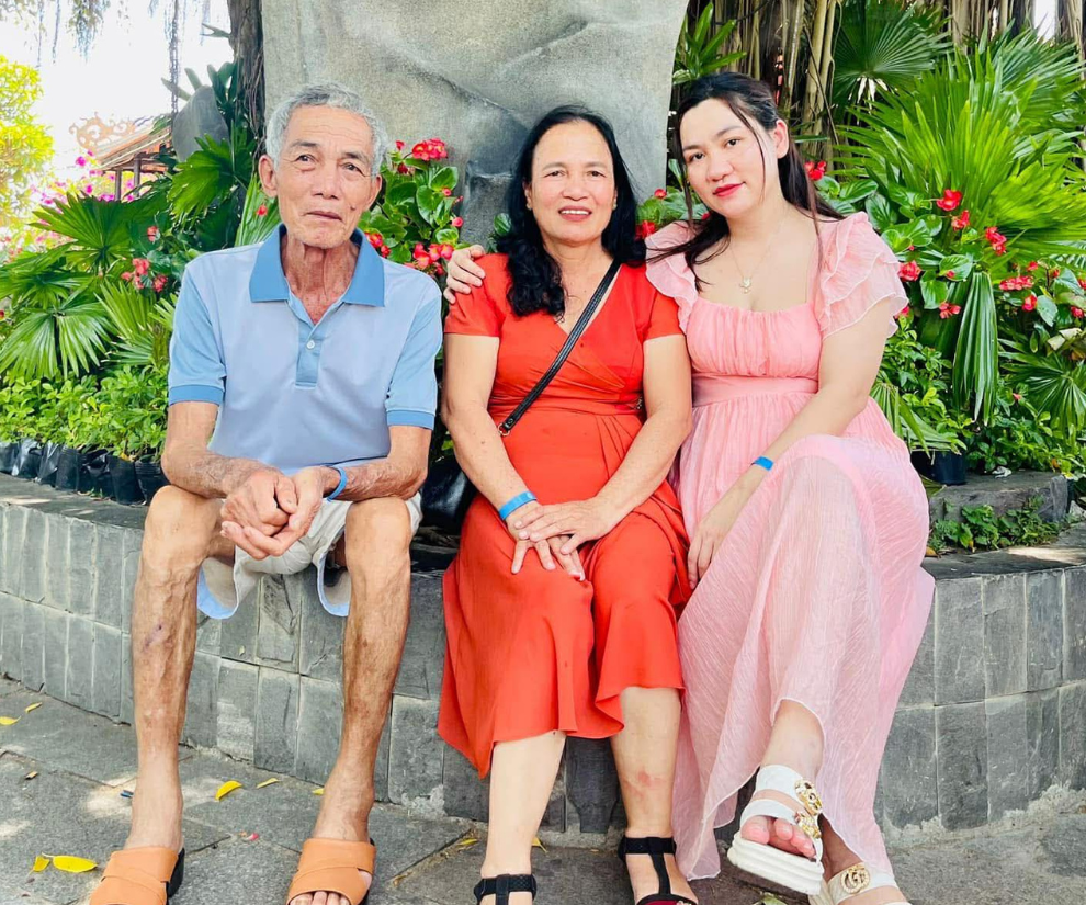 Chị Hương chụp ảnh cùng bố mẹ.
