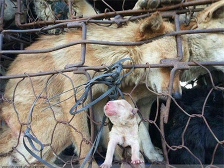 Bên dưới các bài chia sẻ, cư dân mạng cũng đăng tải thêm một loạt các bức ảnh đầy ám ảnh chụp cảnh trên đường đến lò mổ hoặc khi chờ bị giết thịt của chó mèo. Nhìn sâu trong đôi mắt chúng, có thể thấy sự tuyệt vọng và đau đớn khi biết rồi số phận của mình sắp tới đây sẽ chấm dứt.