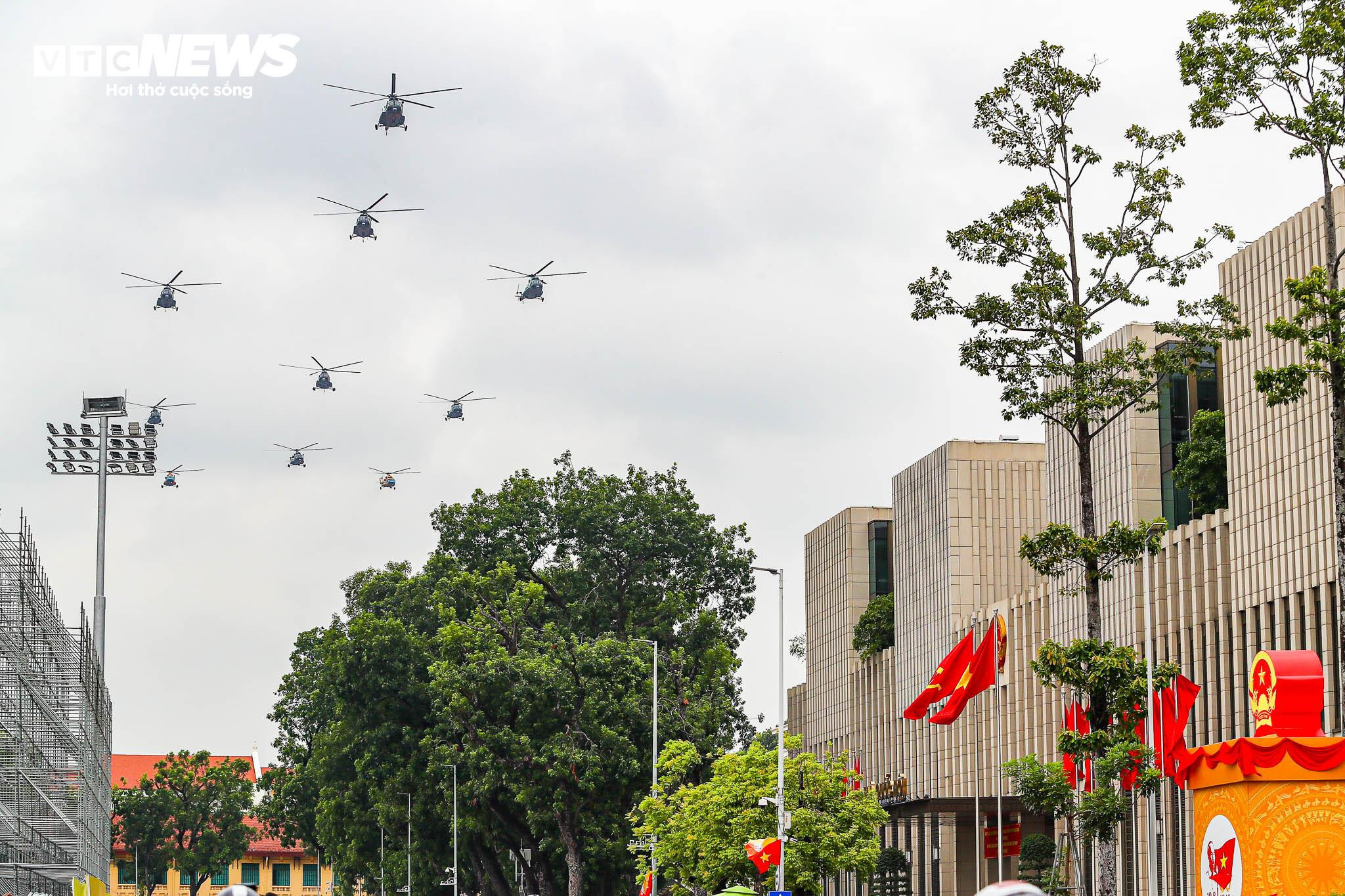 Các khối xe pháo quân sự bánh lốp, tại trường đua F1 cơ động theo đường Lê Quang Đạo, Trần Duy Hưng, Võ Chí Công về vị trí tập kết trước diễu binh, diễu hành trên đường Yên Phụ, Nghi Tàm, Âu Cơ.