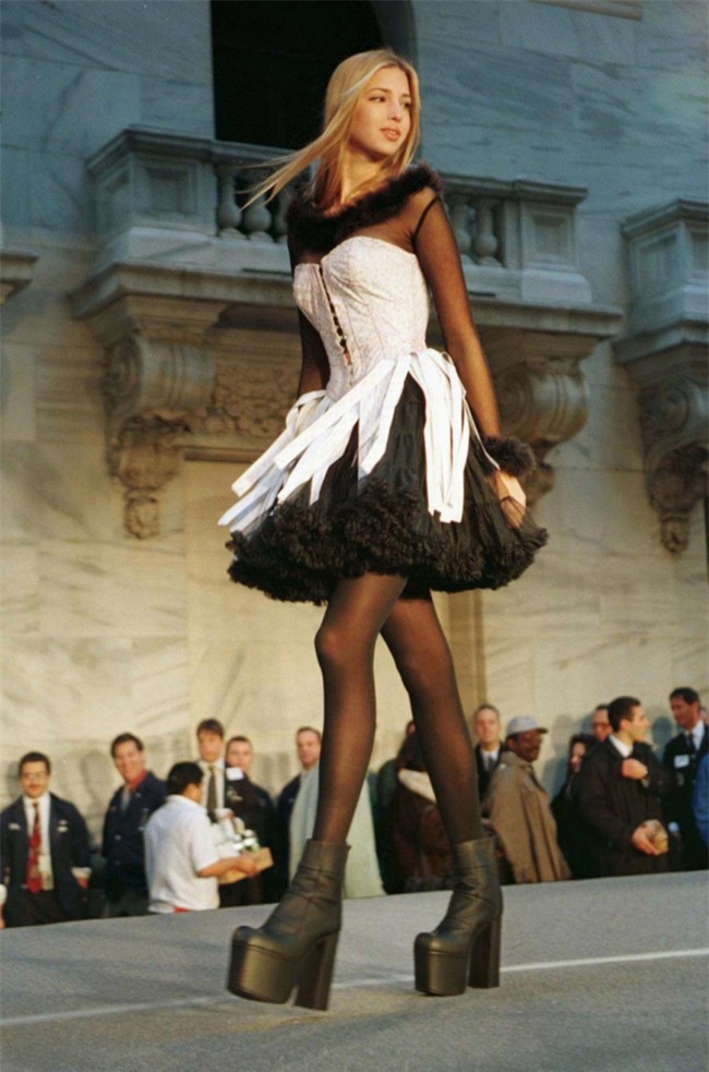 8. Ái nữu nhà Tổng thống Donald Trump tự tin sải bước trong một thiết kế lạ mắt tại Vivienne Westwood Fashion Show thu đông năm 1999