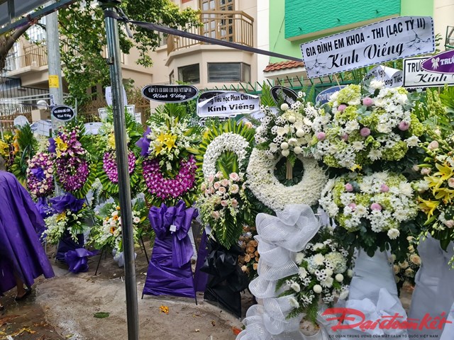Đại diện các trường phổ thông trên địa bàn TP HCM gửi vòng hoa đến viếng cố NGƯT Nguyễn Ngọc Ký. (Ảnh: Công Quốc)