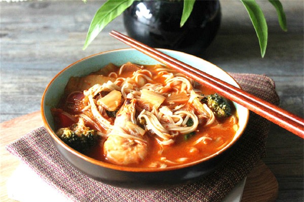 Chỉ với vài thao tác đơn giản, bạn sẽ có ngay một tô canh kim chi ngon hết ý! Món canh kim chi bắt mắt với phần nước dùng cay cay xen lẫn vị chua dịu của kim chi thật đậm đà, kết hợp cùng đậu phụ, súp lơ, nấm và tôm, thịt – như một phiên bản thu nhỏ của món lẩu kim chi, sẽ thật ngon lành và hấp dẫn.