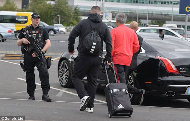 Hôm thứ Tư, HLV Mourinho và các cầu thủ Man Utd đã trở lại Anh sau quãng thời gian du đấu ở Mỹ tại giải ICC. Vừa đặt chân xuống sân bay, HLV Mourinho được một cảnh sát có vũ trang bảo vệ cho ông vào xe hơi và trở lại khách sạn tại trung tâm Manchester.