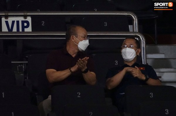 Ngay khi tới sân, HLV Park Hang-seo đã nhanh chóng đo thân nhiệt (bình thường ở mức 36,8 độ) rồi tiến thẳng vào khu VIP. Tại đây, vị chiến lược gia người Hàn Quốc vẫn tỏ ra hết sức thận trọng. Ông không tiếp xúc với nhiều người, liên tục rửa tay bằng dung dịch sát khuẩn khô, dùng đồ ăn nhẹ rồi tiến thẳng lên khán đài.