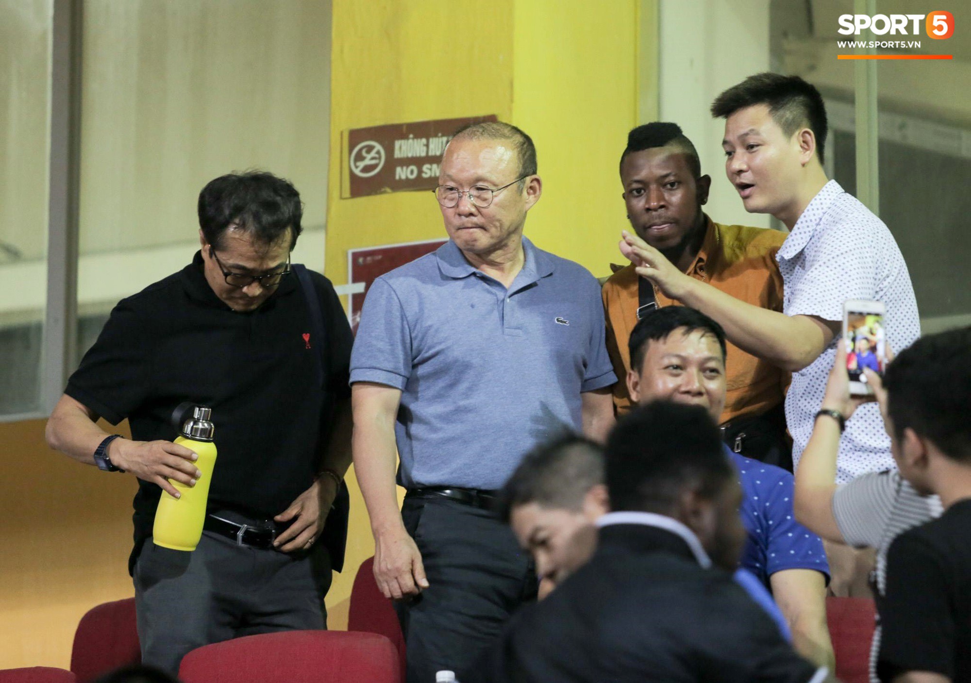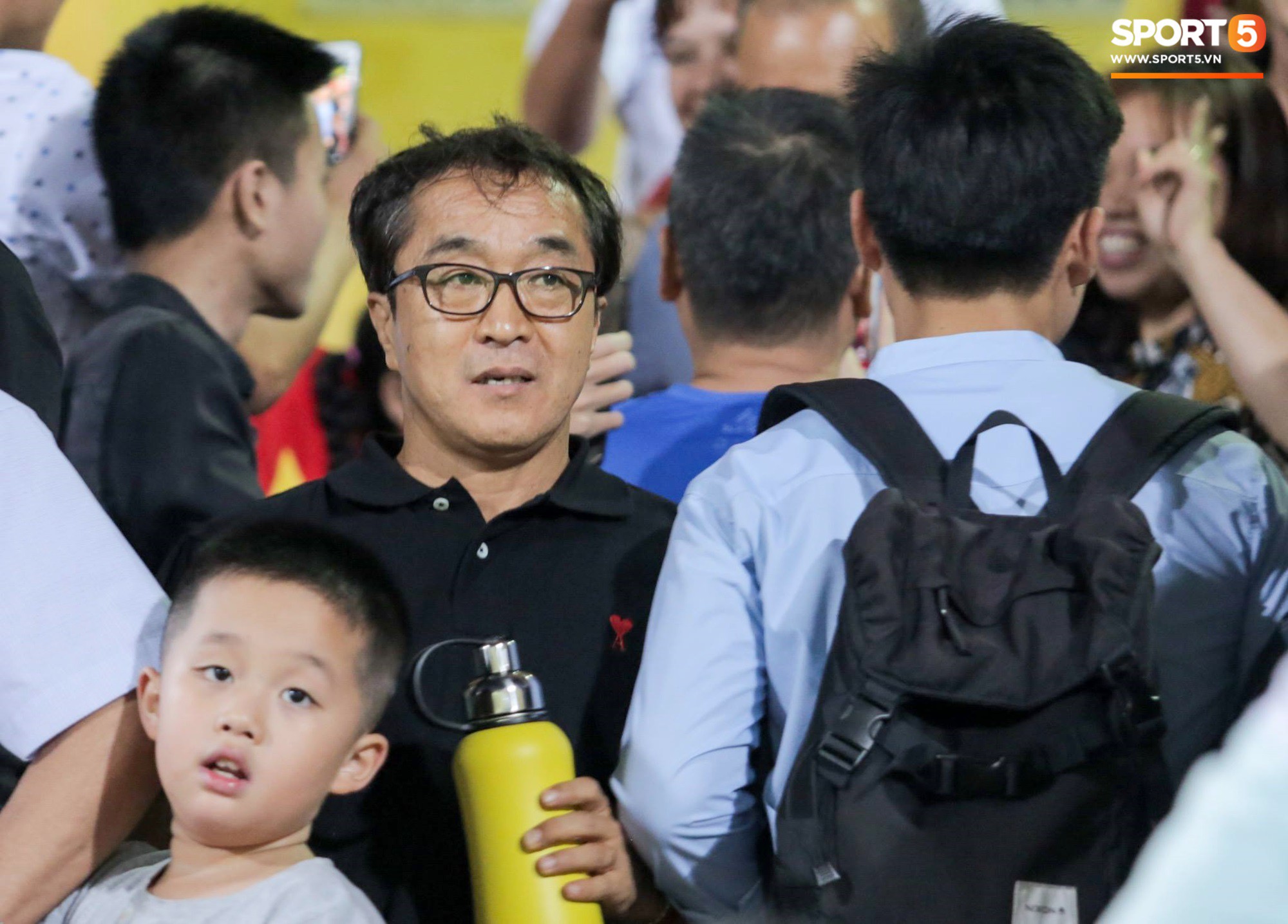 Đi cùng HLV Park Hang Seo còn có trợ lý Lee Young-jin. Họ bị các CĐV bủa vây trên khán đài sau trận đấu. Ảnh: Hiếu Lương