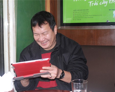 Giờ HLV Hoàng Văn Phúc dùng iPad để thỏa mãn thú vui đọc sách. |