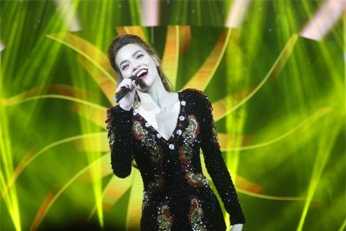 Hồ Ngọc Hà mở đầu đêm diễn bằng liên khúc “What is love – Em đi tìm anh – Em không cần anh nữa”. |