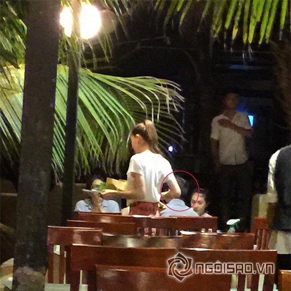Thay vì "đắp" hàng hiệu và trang điểm cầu kỳ như trong chương trình The Face thì Hà Hồ mặc đồ hết sức giản dị khi hẹn hò. Nữ ca sĩ "Tội lỗi" diện áo phông trắng kết hợp với quần short màu đỏ trẻ trung. Sau khi lấy đồ ăn, Hà Hồ quay lại bàn ngồi cạnh đại gia kim cương.