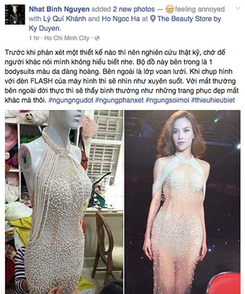 đó, khi đăng tải hình ảnh Hồ Ngọc Hà trong bộ trang phục này, Lý Quí