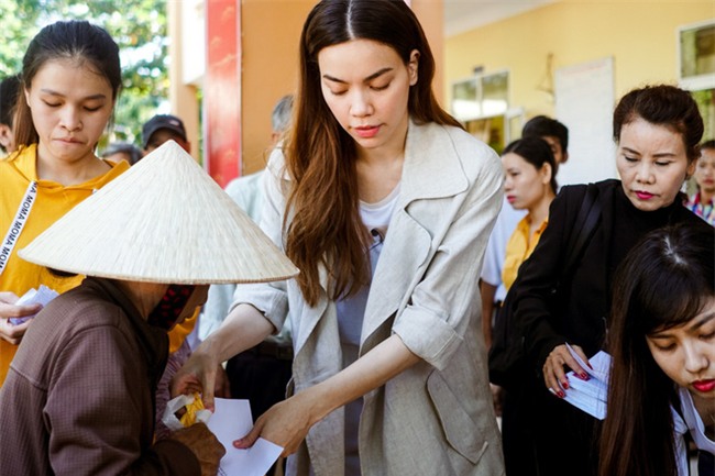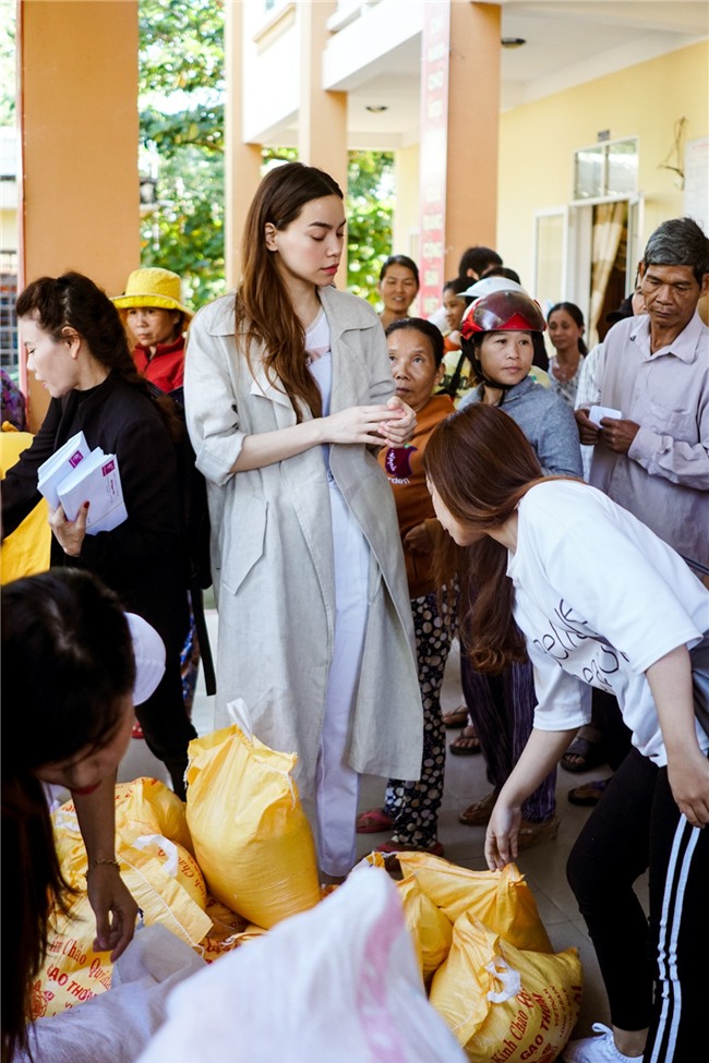 Dù đường đi khá khó khăn do hậu quả của cơn bão để lại, nhưng Hồ Ngọc Hà vẫn đến trực tiếp một số hộ đã bị thiệt hại đổ nát nhà cửa nghiêm trọng để trao tận tay những phần quà từ thiện và hỏi thăm tận tình. Toàn bộ số tiền trong chuyến từ thiện lần này đã được Hồ Ngọc Hà quyên góp từ FC của mình và các khán giả trong chuyến đi lưu diễn tại Úc Châu vừa qua.