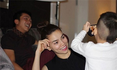 chúng "soi" kỹ. Ngay cả Su Beo, đứa con trai mới 3 tuổi cặp đôi cũng làm