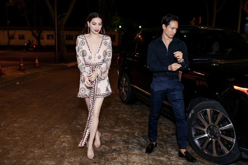 Diện trang phục hồng nhạt khoét ngực sâu của NTK Lý Qúi Khánh, Hồ Ngọc Hà gây chú ý khi vừa xuất hiện. “Tháp tùng” giọng ca “Cả một trời thương nhớ” chắc chắn không thể thiếu “người tình” Kim Lý.