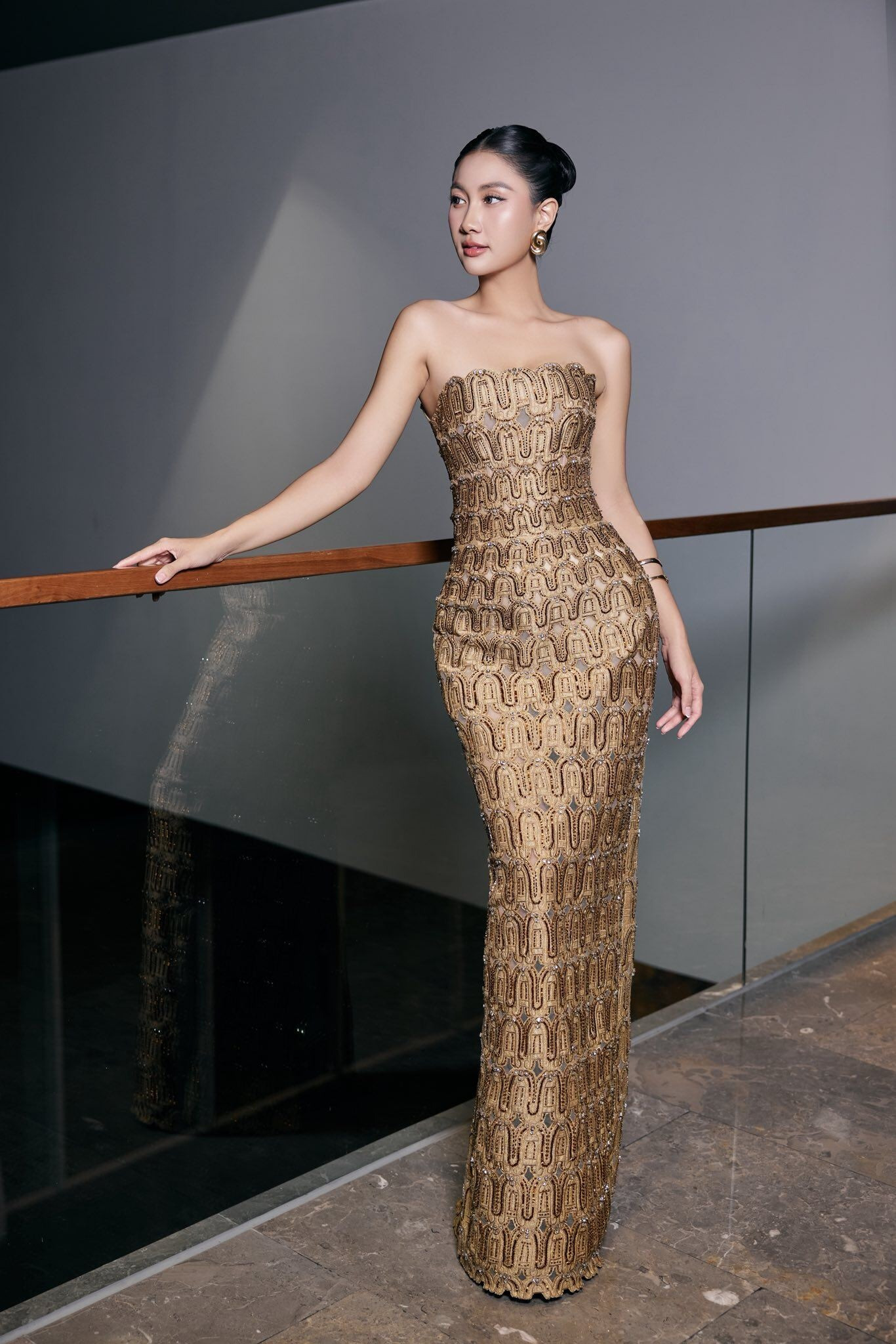 Mới đây, Hoa hậu Tiểu Vy cùng nhiều mỹ nhân Vbiz gây chú ý khi xuất hiện tại lễ Bế mạc Liên hoan Phim Việt Nam lần thứ XXIV.Khoảnh khắc Tiểu Vy xuất hiện trên thảm đỏ khiến mọi ống kính lia đến, hút trọn ánh nhìn của những người có mặt. Qua ống kính máy quay, nữ thần sinh năm 2000 như tỏa ra hào quang khó tả, phát sáng mà không cần ánh đèn nào. Một trong những yếu tố then chốt giúp vẻ ngoài của Tiểu Vy thăng hạng đó chính là sự khéo léo trong việc chọn trang phục. Bộ đầm cúp ngực màu vàng sang chảnh, nhấn nhá với họa tiết bắt mắt giúp nàng hậu khoe trọn bờ vai mảnh khảnh và vóc dáng thon thả.Dù có chiều cao 1m74 khiêm tốn hơn Thiên Ân (1m75) và Lương Thùy Linh (1m79), song trong khoảnh khắc chụp chung, diện mạo kiêu sa nổi bật của Tiểu Vy vẫn giúp người đẹp có phần lấn lướt. Song với netizen nhất là các tín đồ thời trang, không khó để nhận ra chiếc đầm dạ hội mà Tiểu Vy chọn diện có phần "quen quen". Thiết kế lộng lẫy tôn dáng này từng được Hồ Ngọc Hà trưng diện trong một sự kiện từ năm 2025. Thời điểm đó, Hà Hồ gây choáng ngợp nhờ thần thái cực đỉnh khi diện chiếc đầm này. Mẹ ba con khoe vẻ đẹp quyến rũ cùng mái tóc dài uốn lọn đặc trưng. Không phối với quá nhiều trang sức như Tiểu Vy, Hà Hồ tối giản trong việc xài phụ kiện và lựa chọn lối trang điểm sắc sảo.Không chỉ Tiểu Vy hay Hà Hồ, chiếc váy này còn "được lòng" Hoa hậu Phương Linh - Miss Cosmo Vietnam 2025.Nàng hậu mang đến một cảm giác thanh lịch, nhẹ nhàng với kiểu tóc búi cao và layout trang điểm trong trẻo.