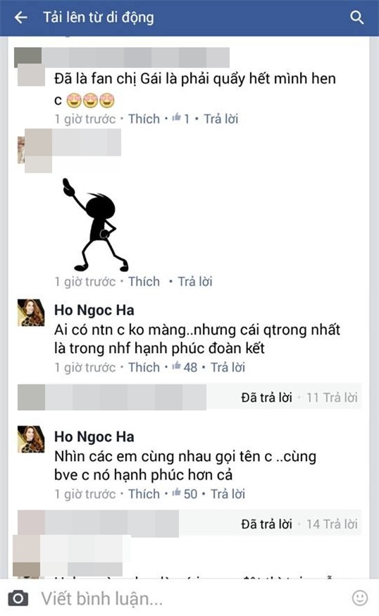 Không thẳng thắn lên tiếng về những ồn ào quanh "biển đen im lặng" mà fan Mỹ Tâm tạo ra trong tiết mục của mình, tuy nhiên, Hồ Ngọc Hà cũng đã có những chia sẻ trấn an và đáp lại tình cảm của fan.