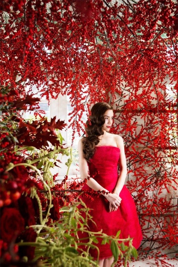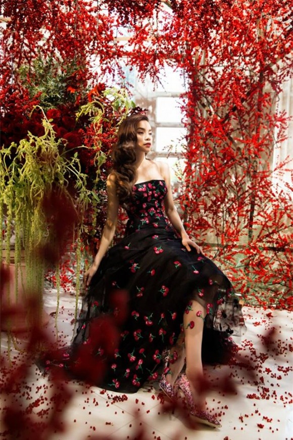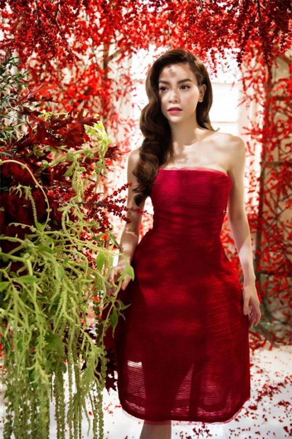 Ca sĩ Hồ Ngọc Hà xinh đẹp, kiêu sa, khoe vai trần quyến rũ giữa không gian ngập tràn hoa.