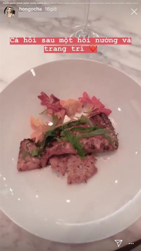 Món cá hồi nướng của đầu bếp nước ngoài phục vụ Hồ Ngọc Hà được trang trí đẹp mắt.
