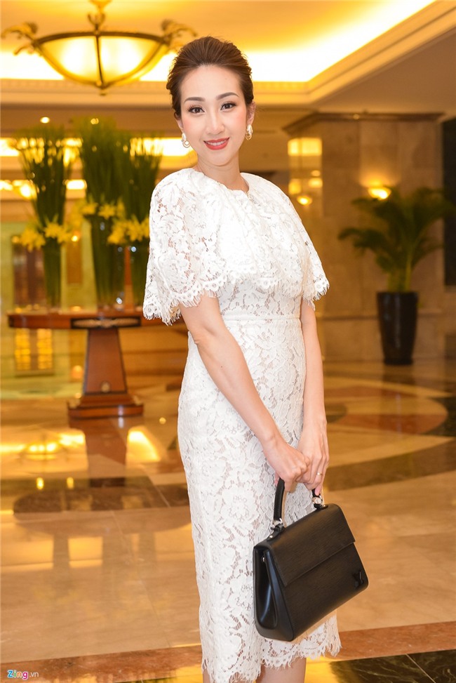 | Lều Phương Anh chọn trang phục ren trắng thanh thoát. |