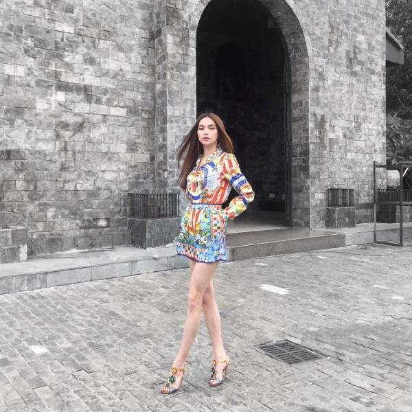 Quý cô hàng hiệu thực sự sặc sỡ trong set đồ của Dolce&Gabbana trị giá lên đến 64 triệu đồng gồm áo 30 triệu, quần 22 triệu và giày cao gót 12 triệu.