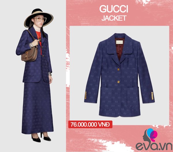Không chỉ có vậy, giá trị mà bộ trang phục của Hồ Ngọc Hà đang diện cũng là điều gây chú ý không kém đôi với người xem. Chiếc áo khoác vải tuýt với đường viền lụa đến từ nhà mốt đình đám Gucci có giá 4,300USD (tương đương).