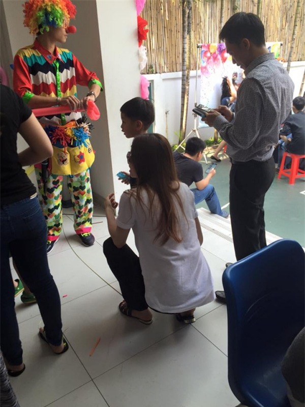 Trong đó nữ ca sỹ trang điểm kĩ lưỡng và tự tin chụp hình cùng ê kíp ở hậu trường của một chương trình được cho là The Face.