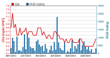 Giá cổ phiếu đã xuống khá sâu so với mức đạt được hồi tháng 11/2013.