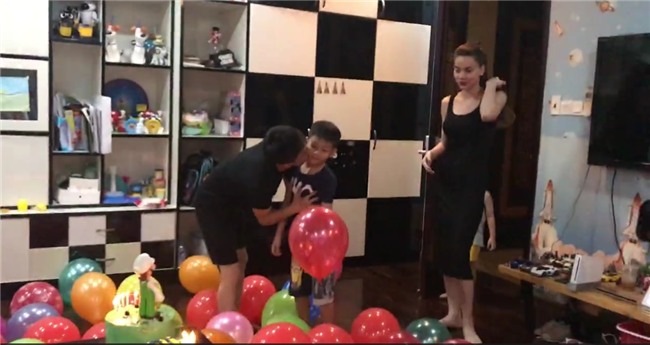 Qua hình ảnh cho thấy, cựu vợ chồng ngôi sao trang hoàng không gian mừng sinh nhật con với bóng bay, đồ chơi ngộ nghĩnh trải khắp phòng. Ông bố họ Nguyễn cầm nến sáng cất tiếng hát mừng sinh nhật khi "nữ hoàng giải trí" mở cửa đưa con trai bước vào. Ngay khi nến sáng cháy hết, Quốc Cường vòng tay ôm hôn con trai, trong khi giọng ca Xin hãy thứ tha đứng vỗ tay tán dương.