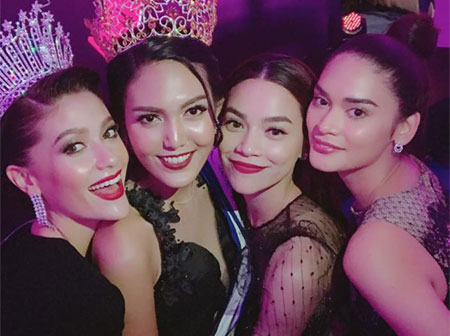 Hoa hậu Hoàn vũ Thế giới có dịp hội ngộ hai nhan sắc đình đám của Việt Nam là Hồ Ngọc Hà và Đỗ Mỹ Linh.
