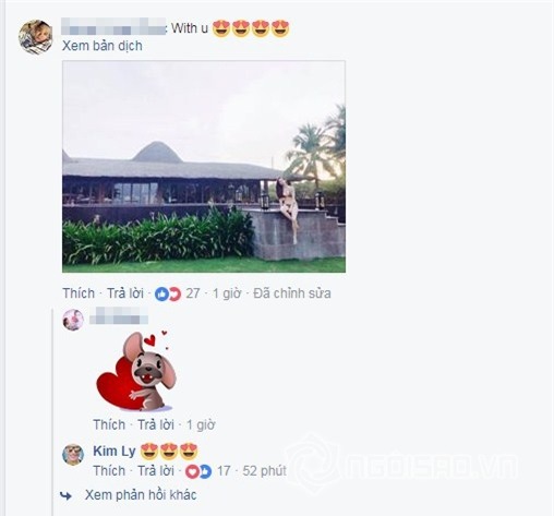 Ngay sau đó, Kim Lý cũng đăng ảnh anh đang ở Đà Nẵng, checkin cùng địa điểm mà Hồ Ngọc Hà và con trai đang ở. Điều này khiến fans phát hiện Hồ Ngọc Hà và Kim Lý đang đi du lịch cùng nhau. Khi được fans hỏi về việc đang ở cùng chị Hà Hồ thì Kim Lý bình luận bằng biểu tượng hình trái tim.