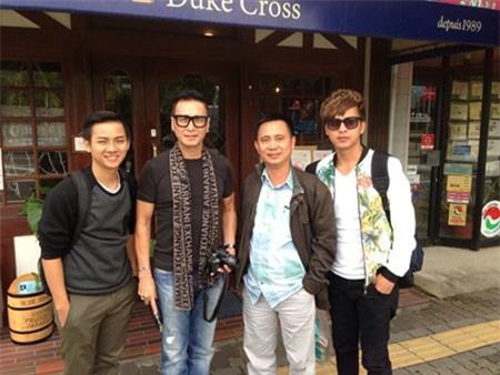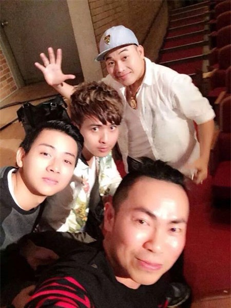 Hình ảnh Hồ Quang Hiếu cùng Hoài Lâm, Hoài Tâm và Khánh Bình khi vừa đến Nhật và háo hức biểu diễn phục vụ kiều bào. |