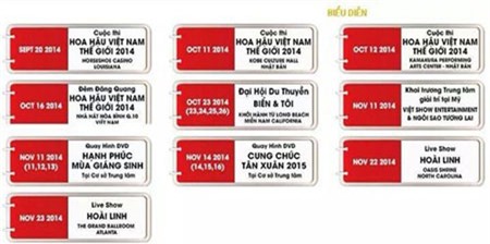 Lịch các chương trình biểu diễn mà Vietshow dự định tổ chức. |