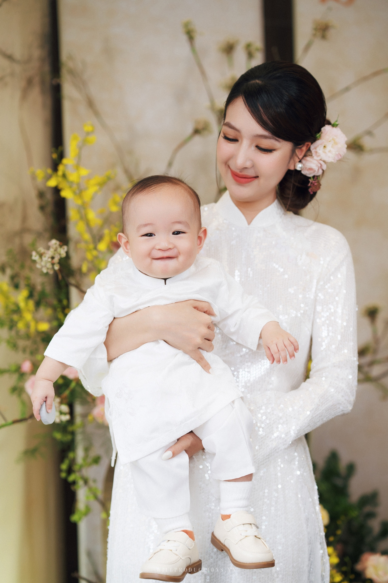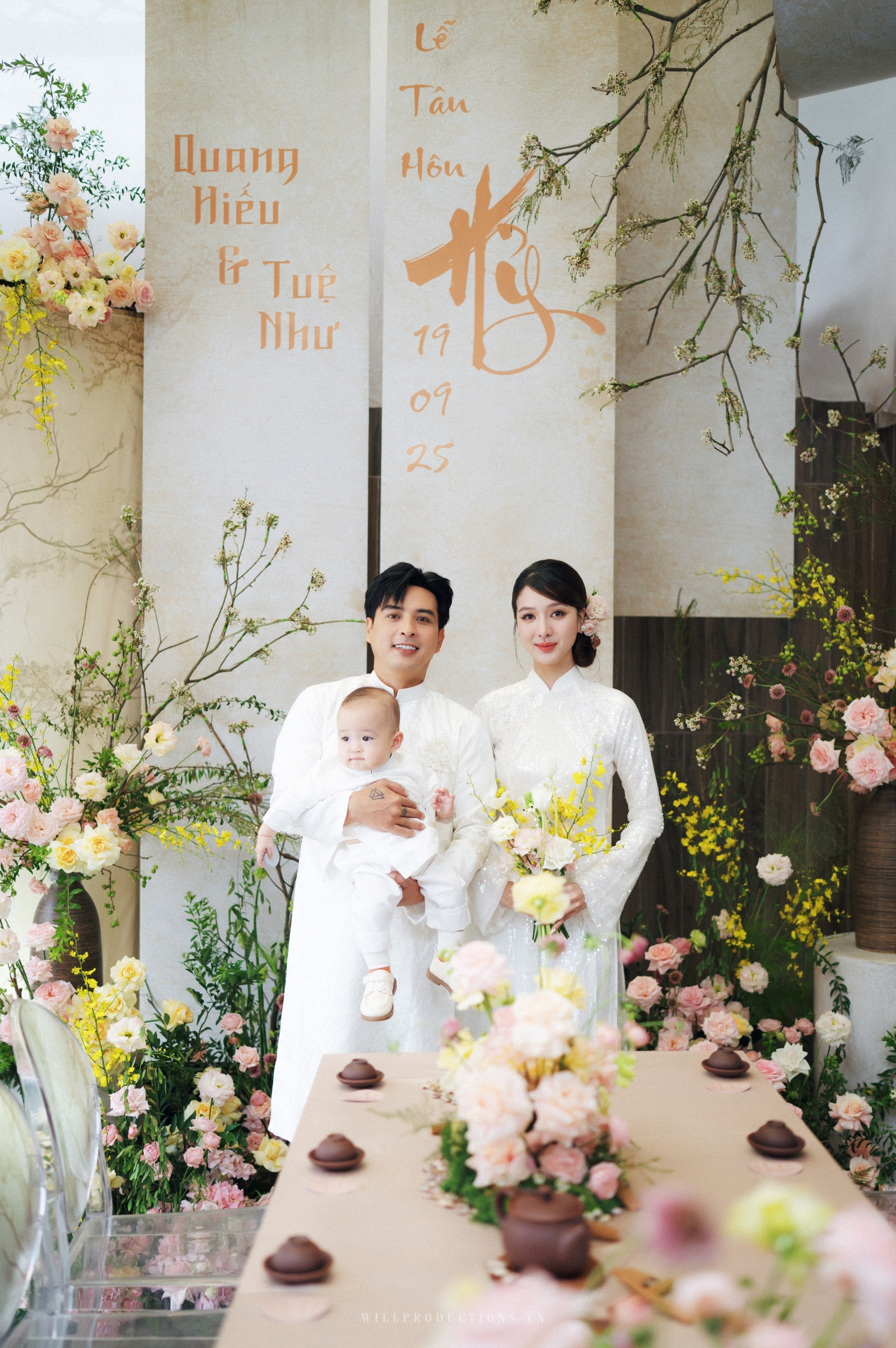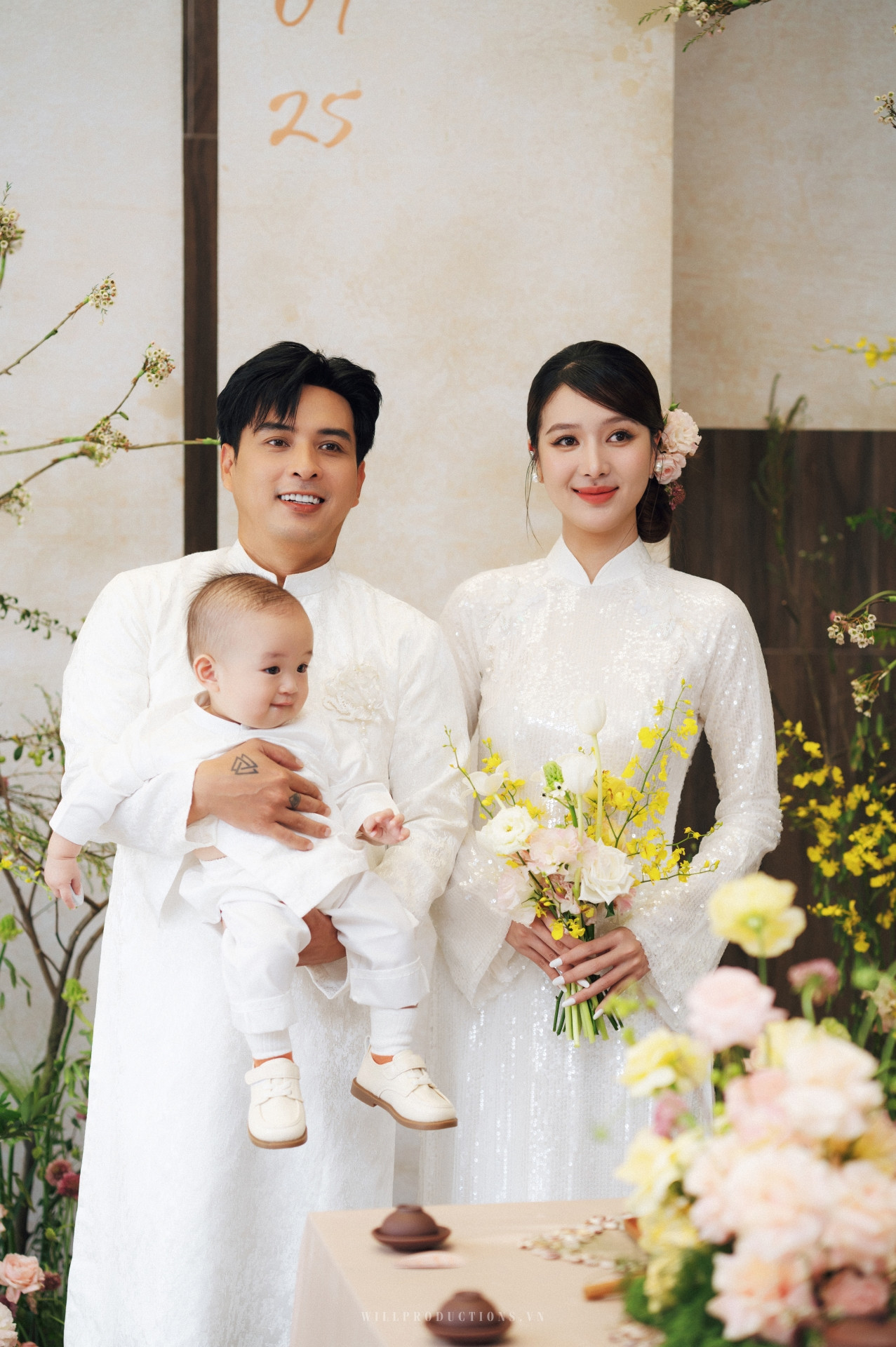 Sự xuất hiện của con trai 8 tháng tuổi - bé Nguyễn Trần Quang Vinh (tên gọi thân mật là Hin) - khiến lễ cưới trở nên đặc biệt hơn.