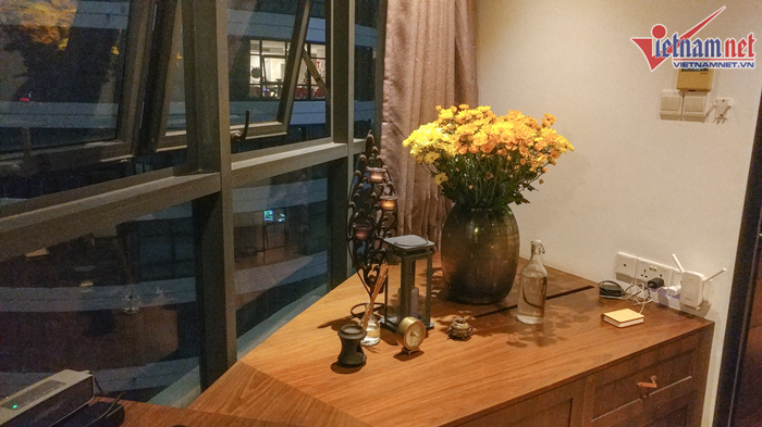 Căn hộ của Hồ Trung Dũng nằm ở tầng 19 của một chung cư cao cấp ở quận Bình Thạnh, TP. HCM. Không gian gây ấn tượng bởi sự tĩnh lặng, gọn gàng và cảm giác ấm áp, bình yên cho người ghé đến. Khu chung cư này cũng là nơi của nhiều nghệ sĩ Việt đang sống.