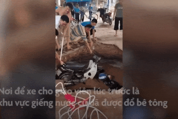 Khu vực giếng nước cũ được đổ bê tông để làm nơi để xe cho giáo viên bất ngờ bị sụt lún tạo thành một "hố tử thần” lớn ngay trong trường Trường Tiểu học Trần Quốc Toản.
