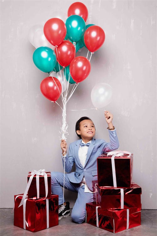 Kids 2016 diện vest xanh nhạt bảnh bao. Giọng ca gốc Tiền Giang thân