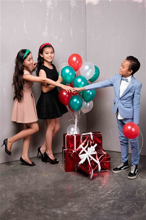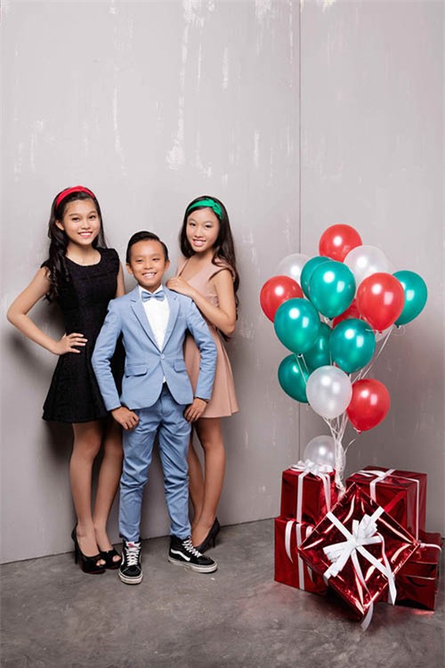 vest bảnh bao chụp bộ hình Giáng sinh cùng hai chị nuôi nên Hồ Văn Cường