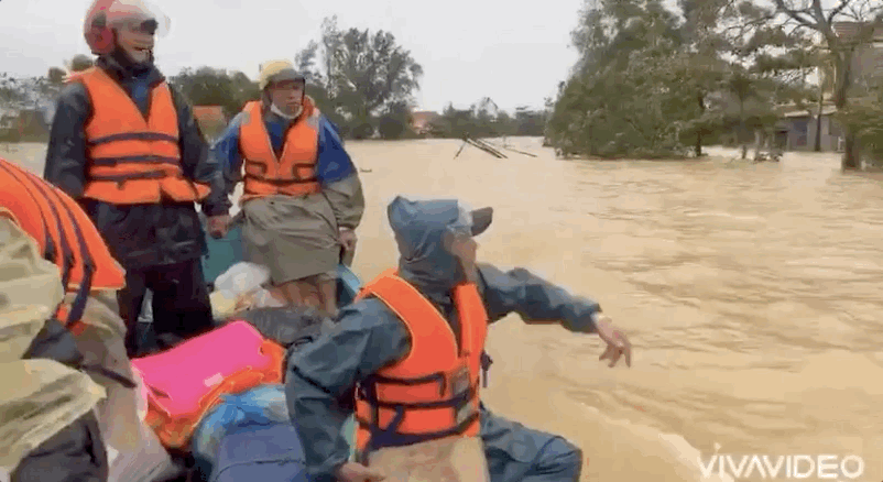 Trên đường đi, Hồ Việt Trung thổi còi báo động cho bà con biết để ra nhận đồ cứu trợ. Thậm chí, thuyền của Hồ Việt Trung còn bị lủng trong chuyến cứu trợ bà con ở vùng tâm lũ