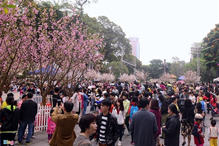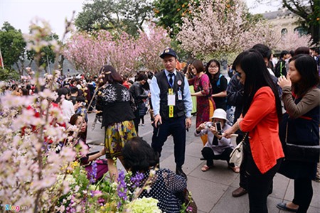 thường lệ, mỗi dịp lễ hội hoa anh đào tổ chức, cảnh đông đúc, chen lấn