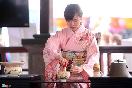 Thiếu nữ Việt thể hiện kỹ thuật trà đạo Nhật Bản. |